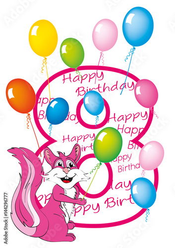 Buon Compleanno Bambina Numero Otto Con Scoiattolo Wall Mural
