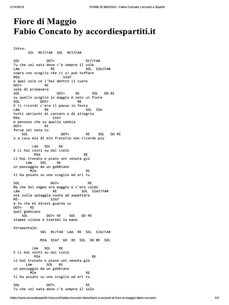 Fiore Di Maggio Accordi 100 Corretti Fabio Concato